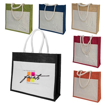 Promote your brand on these natural and biodegradable bags! Jute bags are both fashionable and affordable, allowing your customers to look good whilst being environmentally-friendly! Our promotional Natural jute landscape shopper bag comes with gusset and rope handles.