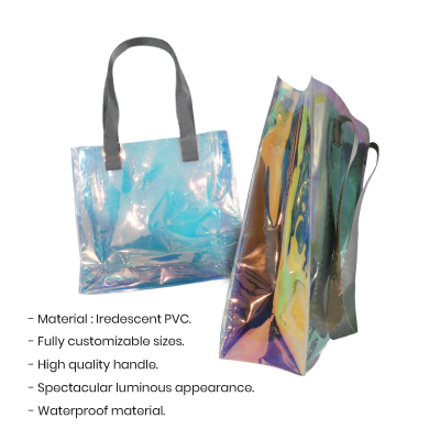 The new LUMIN Custom Holographic Tote Bag is an eye-catching bag that give your branding a unique and dynamic look. It is designed for it's practicality while captivate your target audience with it's shimmering beauty.