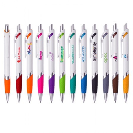 This Vivo - Push Action Ball Plastic Pen features sharp colored grip matching top clip design.