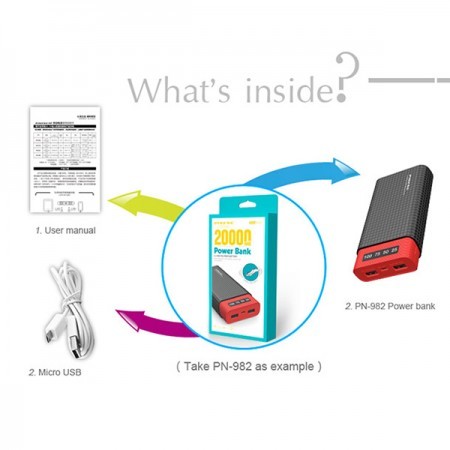 The Original Pineng Branded PN-982 Power Bank - 20000mAh has a LED display to indicate charging/discharging status and residual power. High capacity power but still small in size making it the perfect companion for your technology-fever clients. The outlook has a sleek and stylish design with premium feel. Featuring dual USB ports, Li-polymer built-in battery with double protection.